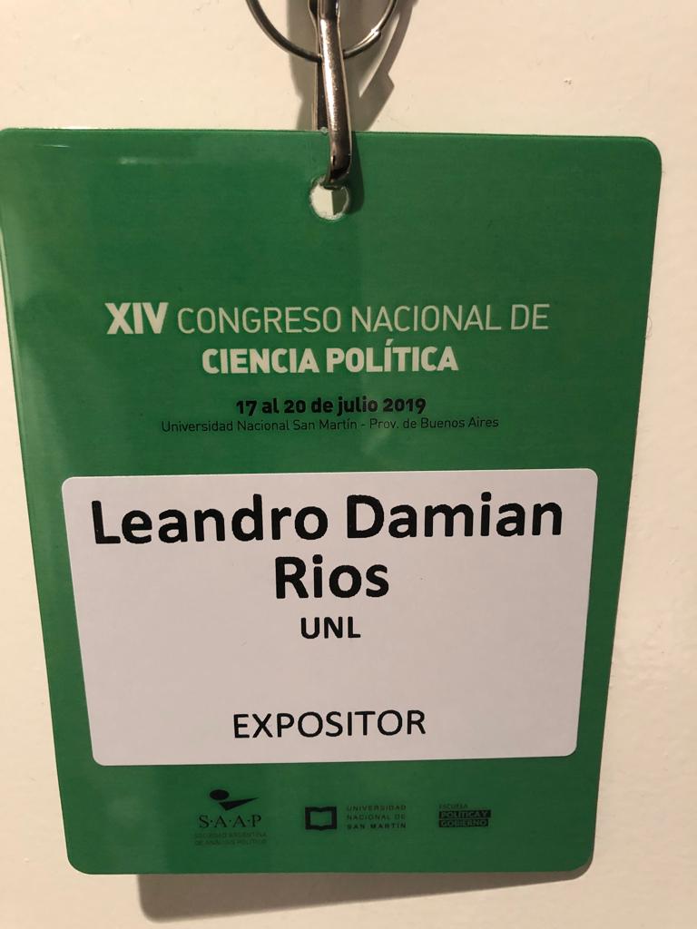 El 18 de julio de 2019, el investigador Leandro D. Ríos expuso sobre Delitos y faltas electorales en el XIV Congreso Nacional de Ciencias Políticas, realizado en la Universidad Nacional de San Martin (UNSAM) – Provincia de Buenos Aires y organizado por el Sociedad Argentina de Análisis Político (SAAP), el cual reunió a más de 2.000 participantes y en el que expusieron 85 investigadores docentes y becarios.