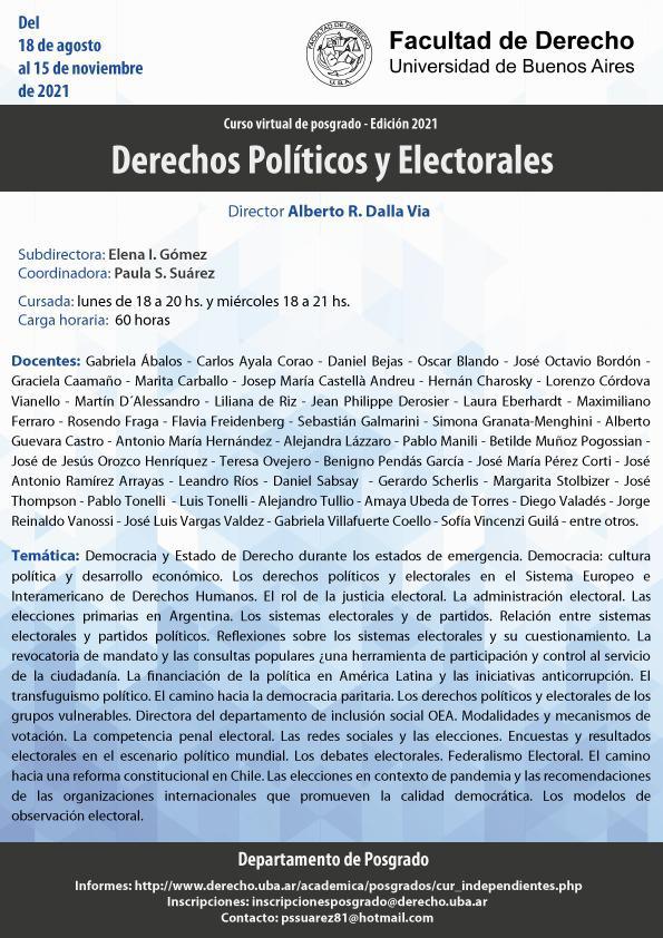 El Prof. Dr. Leandro D. Ríos integra la prestigiosa nómina docente del Curso Virtual de Posgrado de la Facultad de Derecho de la Universidad de Buenos Aires de “Derechos Políticos y Electorales” – Edición 2021, dirigido por los Profesores Dr. Alberto R. Dalla Vía y Elena I. Gómez, bajo la coordinación de la Prof. Paula S. Suárez.